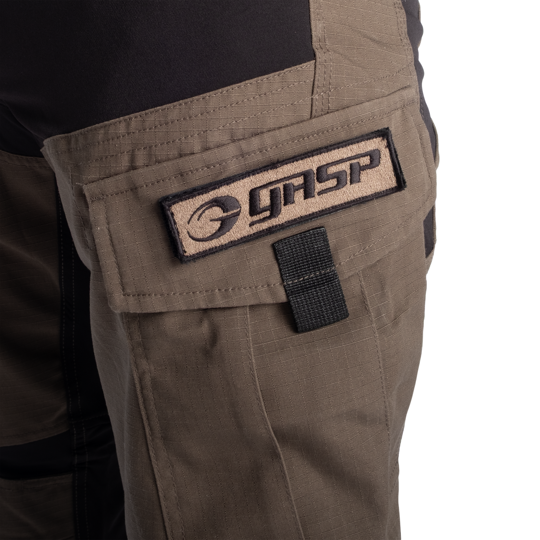 Fit: Regular Length: Regular Material:Base fabric: 65% Cotton 35% Polyester / Reinforced Fabric: 63% Polyamide, 26% Polyester, 11% Elastane Features:Cotton/polyester blended ripstop fabric, features inspired by military pants, GASP Logo on pocket is a removable hook-and-loop patch, 2 elastic solutions in waistband for optimal fit.